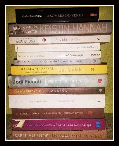 No total, bem sei que ultrapassaram os dez livros, mas pedirem-me para escolher apenas um, nos casos de Saramago ou Zafón é extremamente complicado... diria, que impossível. Portanto, aqui está o meu top dez. Livros que, por algum motivo me marcaram ou com os quais me identifico ou simplesmente porque gostei.